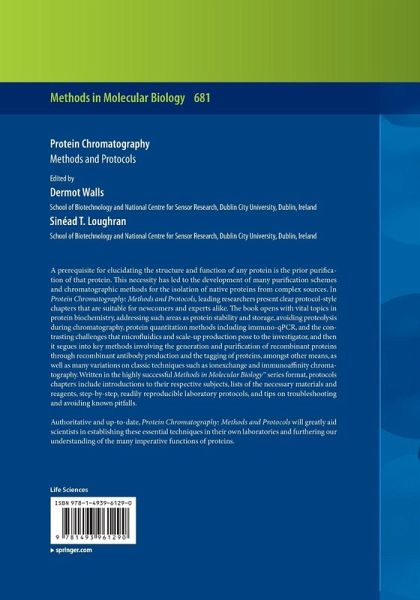 A prerequisite for elucidating the structure and function of any protein is the prior purification of that protein. This necessity has led to the development of many purification schemes and chromatographic methods for the isolation of native proteins from complex sources. In Protein Chromatography: Methods and Protocols, leading researchers present clear protocol-style chapters that are suitable for newcomers and experts alike. The book opens with vital topics in protein biochemistry, addressing such areas as protein stability and storage, avoiding proteolysis during chromatography, protein quantitation methods including immuno-qPCR, and the contrasting challenges that microfluidics and scale-up production pose to the investigator, and then it segues into key methods involving the generation and purification of recombinant proteins through recombinant antibody production and the tagging of proteins, amongst other means, as well as many variations on classic techniques such as ion-exchange and immunoaffinity chromatography. Written in the highly successful Methods in Molecular Biology(TM) series format, protocols chapters include introductions to their respective subjects, lists of the necessary materials and reagents, step-by-step, readily reproducible laboratory protocols, and tips on troubleshooting and avoiding known pitfalls.Authoritative and up-to-date, Protein Chromatography: Methods and Protocols will greatly aid scientists in establishing these essential techniques in their own laboratories and furthering our understanding of the many imperative functions of proteins.