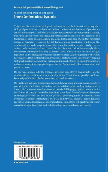 This book discusses how biological molecules exert their function and regulate biological processes, with a clear focus on how conformational dynamics of proteins are critical in this respect. In the last decade, the advancements in computational biology, nuclear magnetic resonance including paramagnetic relaxation enhancement, and fluorescence-based ensemble/single-molecule techniques have shown that biological molecules (proteins, DNAs and RNAs) fluctuate under equilibrium conditions. The conformational and energetic spaces that these fluctuations explore likely contain active conformations that are critical for their function. More interestingly, these fluctuations can respond actively to external cues, which introduces layers of tight regulation on the biological processes that they dictate. A growing number of studies have suggested that conformational dynamics of proteins govern their role in regulating biological functions, examples of this regulation can be found in signal transduction, molecular recognition, apoptosis, protein / ion / other molecules translocation and gene expression.