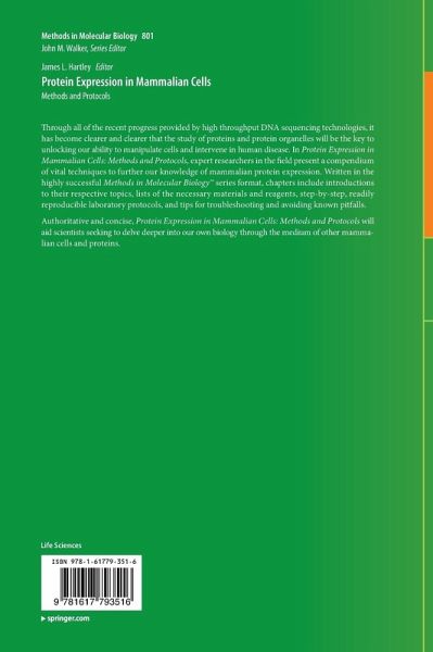 Through all of the recent progress provided by high throughput DNA sequencing technologies, it has become clearer and clearer that the study of proteins and protein organelles will be the key to unlocking our ability to manipulate cells and intervene in human disease.  In Protein Expression in Mammalian Cells: Methods and Protocols , expert researchers in the field present a compendium of vital techniques to further our knowledge of mammalian protein expression.  Written in the highly successful Methods in Molecular Biology(TM) series format, chapters include introductions to their respective…mehr