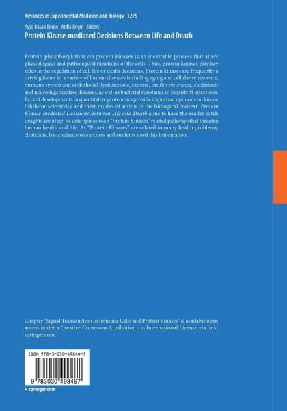 Protein phosphorylation via protein kinases is an inevitable process that alters physiological and pathological functions of the cells. Thus, protein kinases play key roles in the regulation of cell life or death decisions. Protein kinases are frequently a driving factor in a variety of human diseases including aging and cellular senescence, immune system and endothelial dysfunctions, cancers, insulin resistance, cholestasis and neurodegenerative diseases, as well as bacterial resistance in persistent infections. Recent developments in quantitative proteomics provide important opinions on kinase inhibitor selectivity and their modes of action in the biological context. Protein Kinase-mediated Decisions Between Life and Death aims to have the reader catch insights about up-to-date opinions on "Protein Kinases" related pathways that threaten human health and life. As "Protein Kinases" are related to many health problems, clinicians, basic science researchers and students need thisinformation. Chapter "Signal Transduction in Immune Cells and Protein Kinases" is available open access under a Creative Commons Attribution 4.0 International License via link.springer.com.