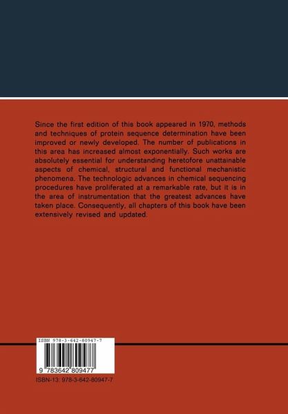 1 General Considerations.- 2 Physical Characterization of the Protein Molecule.- I. Introduction to the Problem.- II. The Accessible Physical Parameters.- III. Sedimentation Methods.- IV. Gel Permeation Methods.- V. Electrophoresis.- VI. Protocol for the Characterization of a Typical Protein, in Preparation for Sequencing.- 3 End Group Determination.- I. Introduction.- II. N-Terminal Group Determination.- III. C-Terminal Group Determination.- IV. Masked Terminal Groups.- 4 Improved Tritium-Labeling for Quantitative C-Terminal Analysis.- I. Improved Reaction Conditions for Tritium-Labeling.- II. Structural Effect on Tritium Incorporation.- III. Approach to Quantitative Analysis of the C-Terminal Residues (Internal Standard Method).- IV. Improvement in the Characterization Procedure of the Tri- tiated C-Terminus.- V. Further Problems.- 5 Fragmentation of Proteins for Sequence Studies and Separation of Peptide Mixtures.- I. Introduction.- II. Non-Enzymic Cleavage of Peptide Bonds.- III. Enzymic Degradation.- IV. Fractionation of Peptides.- 6 Identification of Specific Amino Acid Residues.- I. Introduction.- II. Presentation of the Results.- III. Estimation of Tryptophan.- IV. Estimation of Sulfhydryl Groups.- V. Estimation of Disulfides.- VI. Estimation of Other Amino Acids.- VII. Estimation of Amino and Amide Groups.- VIII. Detection of Amino Acids and Peptides in Paper Chromatograms.- 7 Amino Acid Composition by Column Chromatography.- I. Introduction.- II. Principles.- III. Instrumentation.- IV. Procedures and Techniques.- V. Conclusion.- 8 Sequence Determination.- I. Introduction.- II. Isothiocyanate Degradation.- III. Other Chemical Degradation Procedures.- IV. Enzymatic Degradation Procedures.- V. Conclusion.- 9 Analysis of Amino Acid Phenylthiohydantoins by Gas Chromatography and High Performance Liquid Chromatography.- I. General Methods for PTH Identification.- II. Gas Chromatography.- III. High Performance Liquid Chromatography (HPLC).- IV. Alternate Methods.- 10 Reconstruction of the Primary Sequence of a Protein from Peptides of Known Sequence.- I. Introduction.- II. Determination of the Amino Terminal Peptide.- III. Determination of the Carboxyl Terminal Peptide.- IV. Alignment of Peptides by Analogy.- V. Alignment of Peptides by Peptide Overlap.- VI. Qualities of Computer Programs.- 11 Peptide Synthesis.- I. Introduction.- II. Protecting Groups.- III. Peptide Bond Formation.- IV. Merrified Solid Phase Method.- References.
