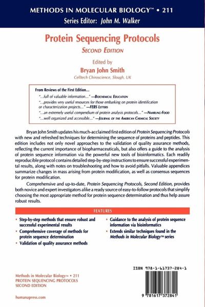 "...this book would certainly benefit readers who are new to the field as well as those more experienced as it serves as a convenient collection of tried and trusted methods...the book gives valuable background and insight to the various techniques associated with protein sequencing, which are often used by those providing services from within a core facility to the wider population of life science researchers." -Proteomics "A positive feature of this book is that the fact that minute details, which are essential for successful implementation of an analytical method are provided. This book can serve as a useful reference for laboratories which mainly utilize chemical methods for protein analysis." -Pharmaceutical Research From Reviews of the First Edition... "...full of valuable information..." -Biochemical Education "...provides very useful resources for those embarking on protein identification or characterization projects..." -FEBS Letters "...an extremely useful compendium of protein analysis protocols..." -Nahrung-Food "...well organized and accessible..." -Journal of the American Chemical Society "The overall result is a concise and highly informative laboratory manual aimed at both operators and users of protein analysis facilities providing an understanding of what techniques involve, how samples should be prepared and in what form and amounts they should be submitted to achieve the most successful data. This publication has certainly proved to be a valuable asset to my laboratory and I would recommend it not only to those in protein sequencing and mass spectrometry laboratories, but also anyone with protein chemistry applications and interests."-Molecular Biotechnology