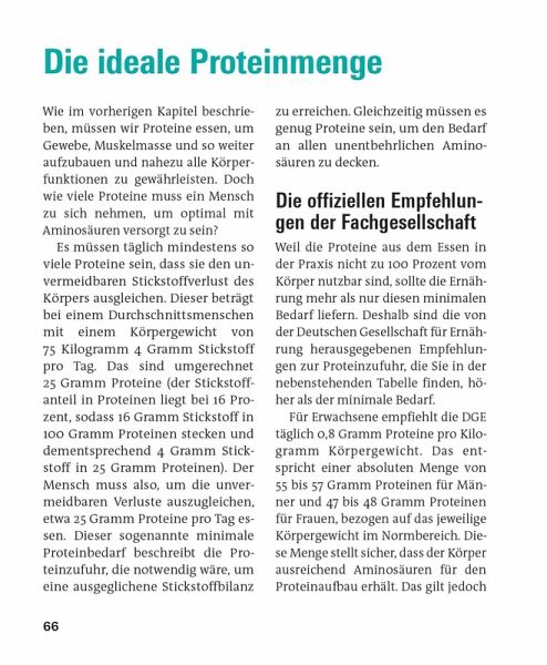 Von Alltagswissen bis Zukunftstrends - z._B. Insekten als Eiweißquelle - liefert dieses Buch wertvolle Einblicke für alle, die ihr Wissen rund um Aminosäuren und Nährstoffe vertiefen wollen. Der Ratgeber bietet praktische Empfehlungen für verschiedene Lebensphasen - von Kindheit bis Alter, vom Freizeitsport bis zur Stillzeit.