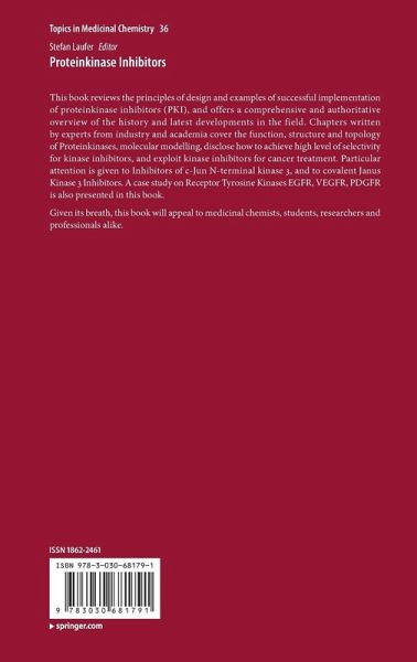 ProteinKinase-Inhibitors: A Story of Success.- Function, Structure and Topology of Proteinkinases.- Molecular Modelling.- Case study on Receptor Tyrosine Kinases EGFR, VEGFR, PDGFR.- Achieving high level of selectivity for kinase inhibitors.- Inhibitors of c-Jun N-terminal kinase 3.- Exploiting kinase inhibitors for cancer treatment - An Overview of Clinical Results and Outlook.- Covalent Janus Kinase 3 Inhibitors.