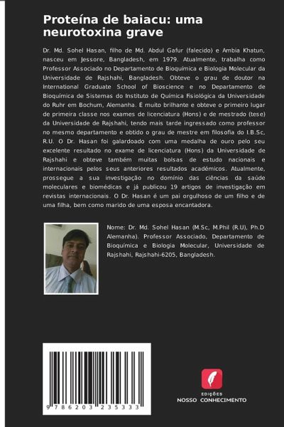 Dr. Md. Sohel Hasan, filho de Md. Abdul Gafur (falecido) e Ambia Khatun, nasceu em Jessore, Bangladesh, em 1979. Atualmente, trabalha como Professor Associado no Departamento de Bioquímica e Biologia Molecular da Universidade de Rajshahi, Bangladesh. Obteve o grau de doutor na International Graduate School of Bioscience e no Departamento de Bioquímica de Sistemas do Instituto de Química Fisiológica da Universidade do Ruhr em Bochum, Alemanha. É muito brilhante e obteve o primeiro lugar de primeira classe nos exames de licenciatura (Hons) e de mestrado (tese) da Universidade de Rajshahi, tendo mais tarde ingressado como professor no mesmo departamento e obtido o grau de mestre em filosofia do I.B.Sc, R.U. O Dr. Hasan foi galardoado com uma medalha de ouro pelo seu excelente resultado no exame de licenciatura (Hons) da Universidade de Rajshahi e obteve também muitas bolsas de estudo nacionais e internacionais pelos seus anteriores resultados académicos. Atualmente, prossegue a sua investigação no domínio das ciências da saúde moleculares e biomédicas e já publicou 19 artigos de investigação em revistas internacionais. O Dr. Hasan é um pai orgulhoso de um filho e de uma filha, bem como marido de uma esposa encantadora.