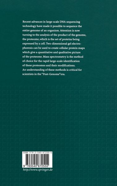 Recent advances in large-scale DNA sequencing technology have made it possible to sequence the entire genome of an organism. Attention is now turning to the analysis of the product of the genome, the proteome, which is the set of proteins being expressed by a cell. Two-dimensional gel electrophoresis can be used to create cellular protein maps which give a quantitative and qualitative picture of the proteome. Mass spectrometry is the method of choice for the rapid large-scale idenfification of these proteomes and their modifications. An understanding of these methods is critical for scientists in the "Post-Genome" era.…mehr