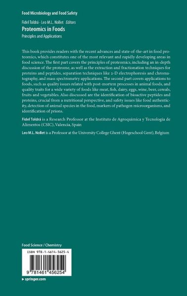 Part I. Principles of Proteomics.- 1. Understanding the proteome. - 2. Extraction/fractionation techniques for proteins and peptides and Protein digestion.- 3. Primary separation: 2-D electrophoresis.- 4. Primary Separation: Chromatography.- 5. Mass spectrometry applications.- Part II. Food Applications of Proteomics.- 6. Challenges and applications of protemics for analysis of changes in early postmortem meat.- 7. Application of proteomics for analysis of protein modifications in postmortem meat.- 8. Biological markers for meat tenderness of the three main French beef breeds using 2-DE and MS approach.- 9. Dry-cured ham.- 10. Evaluation of fish quality and safety by proteomics techniques.- 11. Farmed and Wild fish.- 12. Fish Authentication.- 13. Proteomics in Milk and Milk Processing.- 14. Cheese processing.- 15. Lactic acid bacteria in fermented foods.- 16. Wine quality.- 17. Eggs.- 18. Fruits and vegetables.- 19. Wheat grain proteomics for the food industry.- 20. Proteomics and applications to food science in rice.- 21. Beer proteomics.- 22. Nutritionally relevant proteins.- 23. Relevance of Peptides Bioactivity in Foods.- 24. The role of proteomics in the discovery of marker proteins of food adulteration.- 25. Evaluation of genetically engineered crops using proteomics.- 26. Microbial proteomics for food safety.- 27. Prion biomarkers.- 28. Proteomics of filamentous fungi.