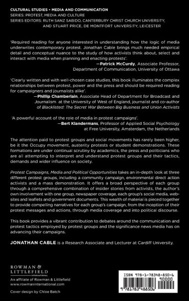 The attention paid to protest groups and social movements has rarely been higher, be it the Occupy movement, austerity protests, or student demonstrations. These formations are under continual scrutiny by academics, the press and politicians who are all attempting to interpret and understand protest groups, their tactics, demands, and their wider influence on society. Protest Campaigns, Media and Political Opportunities takes an in-depth look at three different protest groups including a community campaign, environmental direct action activists, and a mass demonstration. It offers a broad perspective of each group through a comprehensive combination of insider stories from activists, the authors own involvement with one group, newspaper coverage, each group's social media, websites and leaflets, and government documents. This wealth of material is pieced together to provide compelling narratives for each group's campaign, from the inception of their protest messages and actions, through media coverage, and into political discourse. This book provides a vibrant contribution to debates around the communication and protest tactics employed by protest groups and the significance news media has on advancing their campaigns.