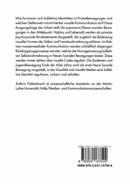 Wie formieren sich kollektive Identitäten in Protestbewegungen und welchen Stellenwert nimmt hierbei visuelle Kommunikation ein? Diese Ausgangsfrage der Arbeit stellt die expressive Ebene sozialer Bewegungen in den Mittelpunkt. Habitus und Lebensstil werden als primäre psychosoziale Bindeelemente dargestellt, die zugleich die Bedeutung visueller Formen der Selbst- und Fremdwahrnehmung erklären. Im Rahmen massenmedialer Kommunikation werden schließlich diejenigen Rückkopplungsprozesse verortet, welche die Homogenisierung kollektiver Selbstwahrnehmung in Neuen Sozialen Bewegungen leisten. Diese werden immer stärker über visuelle Codes reguliert. Die Studenten- und Jugendbewegung Ende der 60er Jahre wird als erste Neue Soziale Bewegung vorgestellt, in der Visualität und visuelle Medien eine kollektive Identität regulieren, sichern und erhalten.