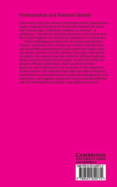 This volume traces the complex contribution which Protestantism made to national identity in the British Isles between the Stuart and the Victorian ages. Often challenging existing work, the essays both question whether nationalism was a secular and 'modern' phenomenon, and ask whether Protestantism could support any simple vision of a united, imperial and 'elect' Britain. Covering a wide variety of subjects, the authors show that whilst the reformed faith was always central to 'British' self-awareness, it could also divide the peoples of Britain and Ireland, could cast doubt on their greatness, and could dissolve any insistence on the uniqueness of these nations. The collection thus takes the study of religion's contribution to nationality beyond simple acknowledgement of its importance, and suggests ways to understand British and Irish development during the 'long eighteenth century'.