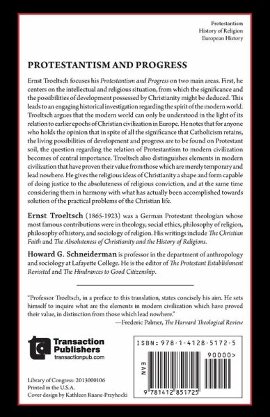 Ernst Troeltsch focuses his Protestantism and Progress on two main areas. First, he centers on the intellectual and religious situation, from which the significance and the possibilities of development possessed by Christianity might be deduced. This leads to an engaging historical investigation regarding the spirit of the modern world. Troeltsch argues that the modern world can only be understood in the light of its relation to earlier epochs of Christian civilization in Europe. He notes that for anyone who holds the opinion that in spite of all the significance that Catholicism retains, the living possibilities of development and progress are to be found on Protestant soil, the question regarding the relation of Protestantism to modern civilization becomes of central importance. Troeltsch also distinguishes elements in modern civilization that have proven their value from those which are merely temporary and lead nowhere. He gives the religious ideas of Christianity a shape and form capable of doing justice to the absoluteness of religious conviction, and at the same time considering them in harmony with what has actually been accomplished towards solution of the practical problems of the Christian life. A new introduction by Howard Schneiderman brings this monumental work into the twenty-first century, and explains why its ideas are more important than ever, one hundred years after its original publication.