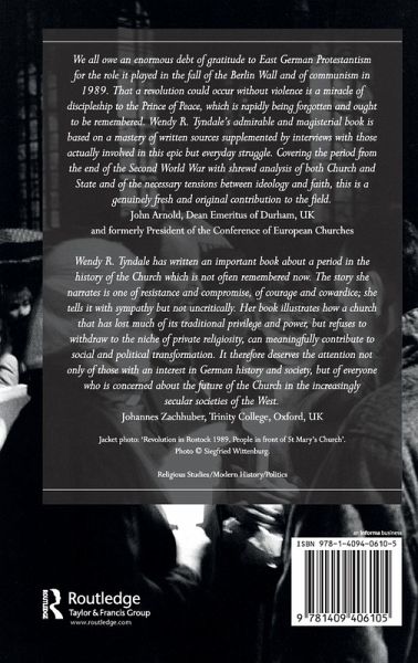 'We all owe an enormous debt of gratitude to East German Protestantism for the role it played in the fall of the Berlin Wall and of communism in 1989. By forming a whole people in the theory and practice of democratic discussion and of peaceful protest, it saved Germany from civil war and Europe, indeed the whole world, from a potential Third World War. That a revolution could occur without violence is a miracle of discipleship to the Prince of Peace, which is rapidly being forgotten and ought to be remembered. Wendy R. Tyndale's admirable and magisterial book is based on a mastery of written sources supplemented by interviews with those actually involved in this epic but everyday struggle. Covering the period from the end of the Second World War with shrewd analysis of both Church and State and of the necessary tensions between ideology and faith, this is a genuinely fresh and original contribution to the field. Tyndale conveys something of what life was actually like both for church leaders and also for ordinary church members and non-members alike under 'real existing socialism' in its most consistently Stalinist form. Shortly after the revolution, however, the masses of people who had flocked to the Prayers for Peace, which had undergirded the demonstrations, ceased to go to church. Once they had reached their destination, the passengers got off the bus; and East Germany is now among the most secularized places in Europe. This book shows how and why that happened. There are lessons here for us all.' John Arnold, Dean Emeritus of Durham, UK and formerly President of the Conference of European Churches 'Wendy R. Tyndale has written an important book about a period in the history of the Church which is not often remembered now. With precision and in an accessible style she charts the development of Protestant Christianity in the GDR from the aftermath of the Second World War to the peaceful revolution of 1989 and into reunited Germany. The story she narrates is on