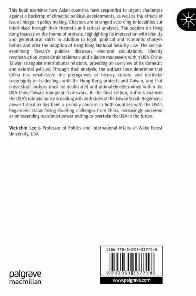 This book examines how Asian countries have responded to urgent challenges against a backdrop of climactic political developments, as well as the effects of issue linkage in policy making. Chapters are arranged according to localities but interlinked through their thematic and critical analyses. The section on Hong Kong focuses on the theme of protests, highlighting its intersection with identity and generational shifts in addition to legal, political and economic changes before and after the adoption of Hong Kong National Security Law. The section examining Taiwan's policies discusses electoral calculations, identity reconstruction, cross-Strait stalemate and alliance maneuvers within USA-China-Taiwan triangular international relations, providing an overview of its domestic and external policies. Through their analysis, the authors here determine that China has emphasized the prerogatives of history, culture and territorial sovereignty in its dealings with the Hong Kong protestsand Taiwan, and that cross-Strait analysis must be deliberated and ultimately determined within the USA-China-Taiwan triangular framework. In the final section, authors examine the USA's role and policy in dealing with both sides of the Taiwan Strait. Hegemonic power transition has been a primary concern in both countries with the USA's hegemonic status facing daunting challenges from China, increasingly perceived as an ascending revisionist power waiting to overtake the USA in the future.