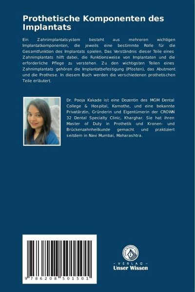Ein Zahnimplantatsystem besteht aus mehreren wichtigen Implantatkomponenten, die jeweils eine bestimmte Rolle für die Gesamtfunktion des Implantats spielen. Das Verständnis dieser Teile eines Zahnimplantats hilft dabei, die Funktionsweise von Implantaten und die erforderliche Pflege zu verstehen. Zu den wichtigsten Teilen eines Zahnimplantats gehören die Implantatbefestigung (Pfosten), das Abutment und die Prothese. In diesem Buch werden die verschiedenen prothetischen Teile erläutert.