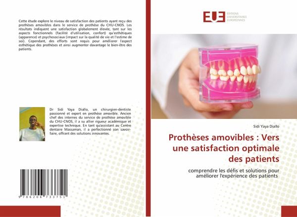 Cette étude explore le niveau de satisfaction des patients ayant reçu des prothèses amovibles dans le service de prothèse du CHU-CNOS. Les résultats indiquent une satisfaction globalement élevée, tant sur les aspects fonctionnels (facilité d'utilisation, confort) qu'esthétiques (apparence) et psychosociaux (impact sur la qualité de vie et l'estime de soi). Cependant, des efforts sont requis pour améliorer l'aspect esthétique des prothèses et ainsi augmenter davantage le bien-être des patients.