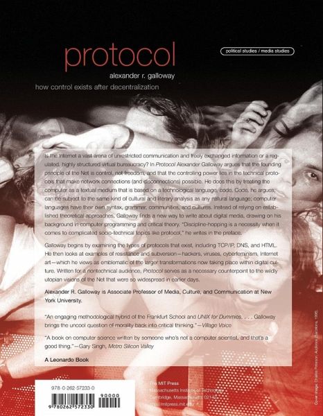 How Control Exists after Decentralization Is the Internet a vast arena of unrestricted communication and freely exchanged information or a regulated, highly structured virtual bureaucracy? In Protocol, Alexander Galloway argues that the founding principle of the Net is control, not freedom, and that the controlling power lies in the technical protocols that make network connections (and disconnections) possible. He does this by treating the computer as a textual medium that is based on a technological language, code. Code, he argues, can be subject to the same kind of cultural and literary analysis as any natural language; computer languages have their own syntax, grammar, communities, and cultures. Instead of relying on established theoretical approaches, Galloway finds a new way to write about digital media, drawing on his backgrounds in computer programming and critical theory. "Discipline-hopping is a necessity when it comes to complicated socio-technical topics like protocol," he writes in the preface. Galloway begins by examining the types of protocols that exist, including TCP/IP, DNS, and HTML. He then looks at examples of resistance and subversion—hackers, viruses, cyberfeminism, Internet art—which he views as emblematic of the larger transformations now taking place within digital culture. Written for a nontechnical audience, Protocol serves as a necessary counterpoint to the wildly utopian visions of the Net that were so widespread in earlier days.