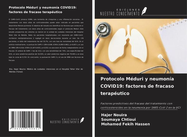 El SARS-CoV-2 provoca SDRA, una tormenta de citoquinas y una inflamación excesiva... El tratamiento con dosis altas de corticosteroides puede estar indicado en pacientes que desarrollan fibrosis pulmonar. El objetivo del estudio era identificar los factores que conducen al fracaso del tratamiento con dosis altas de corticosteroides según el protocolo Meduri. Este estudio prospectivo de cohortes se realizó en la unidad de cuidados intensivos del Hospital Taher Sfar de Mahdia. Todos los pacientes hospitalizados con neumonía por SARS-CoV-2 recibieron metilprednisolona 2 mg/kg/d en dosis decrecientes durante un mes. De 178 pacientes, el éxito del tratamiento fue del 33,7%, con una tasa de mortalidad del 61%. En el análisis multivariante, la puntuación SAPS II (OR=0,938; IC95% [0,895-0,982], p=0,007) y el uso de VMNI (OR=0,416; IC95% [0,187-0,925], p=0,031) se asociaron de forma independiente con el fracaso. El umbral de SAPS II fue de 23,5, con una sensibilidad del 75%, una especificidad del 61%, un valor predictivo positivo del 54,55%, un valor predictivo negativo del 79,46% y un área bajo la curva de 0,724. En conclusión, la puntuación SAPS II y el uso de VMNI son factores de fracaso.