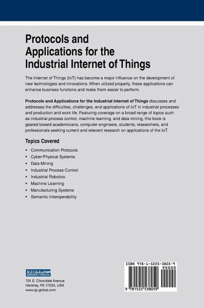 The Internet of Things (IoT) has become a major influence on the development of new technologies and innovations. When utilized properly, these applications can enhance business functions and make them easier to perform. Protocols and Applications for the Industrial Internet of Things discusses and addresses the difficulties, challenges, and applications of IoT in industrial processes and production and work life. Featuring coverage on a broad range of topics such as industrial process control, machine learning, and data mining, this book is geared toward academicians, computer engineers, students, researchers, and professionals seeking current and relevant research on applications of the IoT.