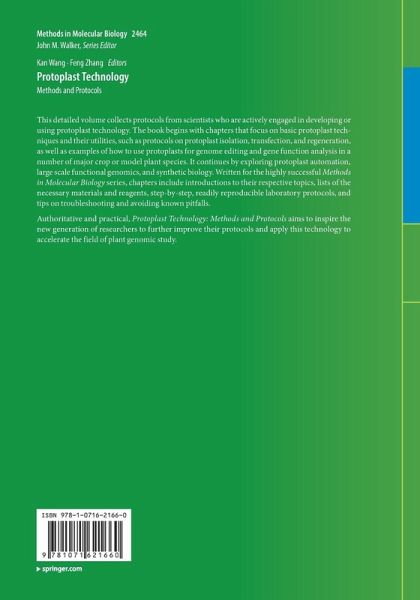 Authoritative and practical, Protoplast Technology: Methods and Protocols aims to inspire the new generation of researchers to further improve their protocols and apply this technology to accelerate the field of plant genomic study.