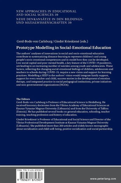 Giedr Kvieskien & Gerd-Bodo von Carlsburg : Preface -Giedr Kvieskien : Introduction. Development of a Prototype of Social-Emotional Education -Martina Möller & Gerd-Bodo von Carlsburg : Social-Emotional Conceptualizations. Online Learning Innovations and Prototypical Interfaces -Arvydas Liepuonius : The Psychology of the Pandemic. Modelling of Social-Emotional Success in Educational Practice - Giedr Kvieskien , Nijol Ciuciulkien & Karmen Trasberg : Collaborative Academic, Social and Emotional Learning (CASEL) for Children and Young People -Vytautas Kvieska : Robots and Gamification for Social-Emotional Success -Giedr Kvieskien , Karmen Trasberg & Ilz Ivanova : Social-Emotional Prototype Design with NEET -Ilona Tandzegolskien , Danguol Bylait -Salavejien , Ausra Rutkien , Ilz Ivanov, Karmen Trasberg & Nijol Ciuciulkien : Strategic Planning of Social and Emotional Skills Development: Methodology and Research -Gerd-Bodo von Carlsburg & Giedr Kvieskien : Finalization Remarks and Discussion -Giedr Kvieskien & Gerd-Bodo von Carlsburg : Concepts -Giedr Kvieskien & Gerd-Bodo von Carlsburg : Annexes -About the Editors - About the Authors.