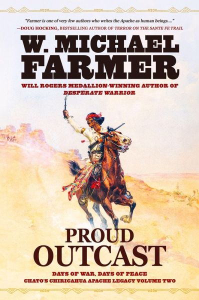 Defying betrayal and hardship, Chato fights to save his family and his people's rightful place in the West. As the Apache Wars roar toward their conclusion in the summer of 1886, renowned Apache army scout and leader Chato joins a delegation of scouts to Washington, D.C., to meet President Grover Cleveland. Their mission? To plead their case for the Chiricahua scouts to remain at Fort Apache and cultivate their lands in peace. For his unwavering loyalty and service, Chato is awarded a silver medal from Cleveland, along with the implied promise that the scouts can stay where they are. However, after Geronimo's surrender, Chato and his fellow scouts are instead transported to the harsh confines of Fort Marion, Florida, as prisoners of war. They, and the Chiricahua people as a whole, will be deprived of their freedom and their way of life for the next three decades. Finally freed in the wake of Geronimo's death, the tribe returns to New Mexico to start over. But Geronimo's longstanding assertion that Chato is a liar and traitor casts a long shadow. Shunned by the very people he has spent his life fighting for, Chato nevertheless remains defiant, his resilient spirit never wavering despite the heavy toll of his life's trials. Will Rogers Medallion-winning author W. Michael Farmer masterfully concludes Chato's epic tale, illuminating the resilience of a leader determined to preserve his people's heritage against overwhelming odds. Proud Outcast is a tale of honor, survival, and the relentless pursuit of a place to call home.