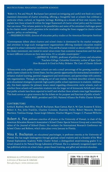 Introduction The Growth of Ethnocentric Charter Schools Robert A. Fox and Nina K. Buchanan Chapter One Kua O Ka La: A Hawaiian Culturally-Focused Charter School Nina K. Buchanan, Robert A. Fox, Susan L. Osborne and C. Puanani Wilhelm Chapter Two Restoring Native American Culture and Language through Public Education Mark Blitz Chapter Three A Model for Educating African-American Students Tanikiaa Orange and Sharroky Hollie Chapter Four A Case Study of Helenic Classical Charter School Charisse Gulosino Chapter Five Immigrant Advantage: What Makes Does Science Academy Fly? Robert Maranto, Kaan Camuz and John Franklin Chapter Six A Somali School in Minneapolis Letitia E. Basford and Heather Megarry Traeger Chapter Seven A New Approach to Educating Latino English Language Learners Brenda Martinez and Mark Blitz Chapter Eight Ethnocentric Niche Charter Schools: A View Through Legal and Policy Lenses Suzanne E. Eckes and Kari A. M. Carr