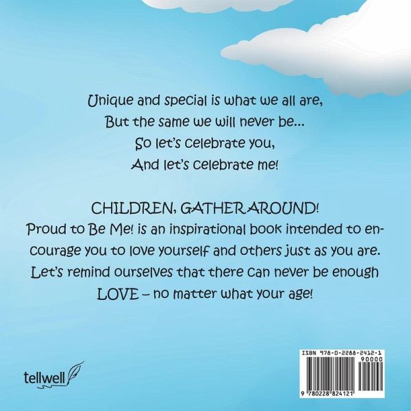 Unique and special is what we all are, But the same we will never be... So let's celebrate you, And let's celebrate me! CHILDREN, GATHER AROUND! Proud to Be Me! is an inspirational book intended to encourage you to love yourself and others just as you are. Let's remind ourselves that there can never be enough LOVE - no matter what your age!