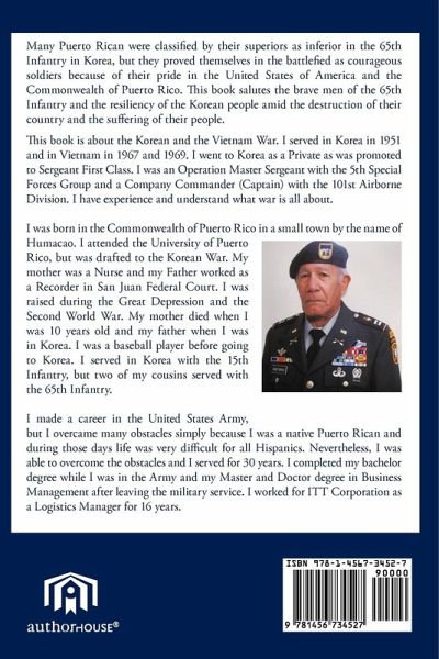 Many Puerto Rican were classified by their superiors as inferior in the 65th Infantry in Korea, but they proved themselves in the battlefied as courageous soldiers because of their pride in the United states of America and the Commonwealth of Puerto Rico. This book salutes the brave men of the 65th Infantry and the resiliency of the Korean people amid the destruction of their country and the suffering of their people.