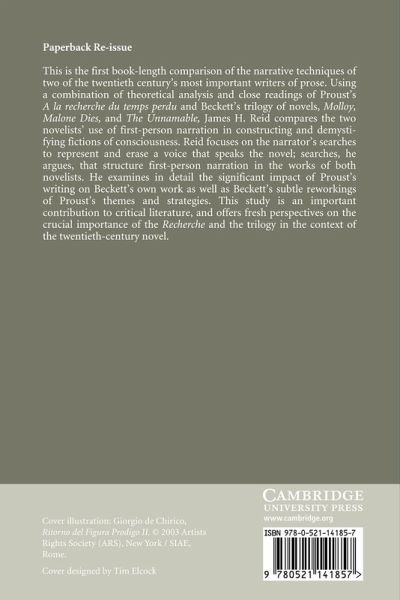 This a comprehensive comparison of the narrative techniques of two of the twentieth century's most important writers of prose. Using a combination of theoretical analysis and close readings of Proust's A la recherche du temps perdu and Beckett's trilogy of novels, Molloy, Malone Dies, and The Unnamable, James H. Reid compares the two novelists' use of first-person narration in constructing and demystifying fictions of consciousness. Reid focuses on the narrator's search to represent the voice that speaks the novel, a search, he argues, that structures first-person narration in the works of both novelists. He examines in detail the significant impact of Proust's writing on Beckett's own work as well as Beckett's subtle reworkings of Proust's themes and strategies. This study is an important contribution to critical literature, and offers fresh perspectives on the crucial importance of the Recherche and the trilogy in the context of the twentieth-century novel.