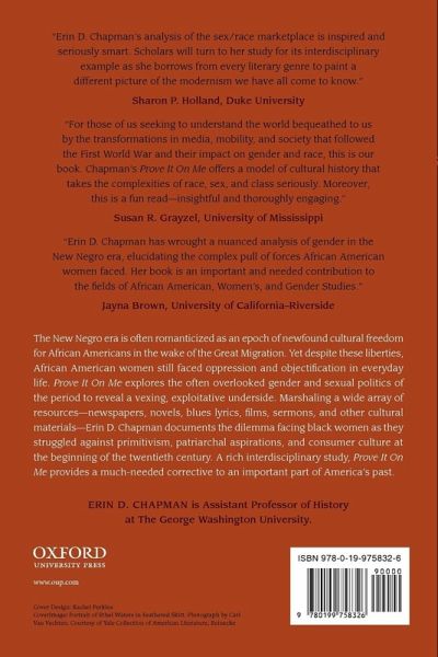Prove It On Me explores the sexual politics of the modern racial ethos and reveals the exploitative underside of the New Negro era. Analyzing intersecting primitivism, consumerism, and New Negro patriarchal aspirations, this history investigates the uses made of black women in 1920s racial politics and popular culture.
