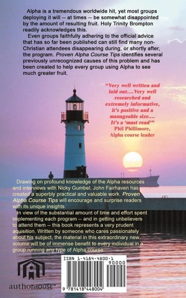 Written by a colleague: Alpha is a tremendous worldwide hit, yet most groups deploying it will - at times - be somewhat disappointed by the amount of resulting fruit. Holy Trinity Brompton readily acknowledges this. Even groups faithfully adhering to the official advice that has so far been published can still find many non-Christian attendees disappearing during, or shortly after, the program. Proven Alpha Course Tips identifies several previously unrecognized causes of this problem and has been created to help every group using Alpha to see much greater fruit. "Very well written and laid out.... Very well researched and extremely informative. It''s positive and a manageable size.... It''s a ''must read''" - Phil Phillimore, Alpha course leader Drawing on profound knowledge of the Alpha resources and interviews with Nicky Gumbel, John Fairhaven has created a most practical work. Proven Alpha Course Tips will encourage and excite readers with its unique insights. In view of the substantial amount of time and effort spent implementing each program - and on getting unbelievers to attend them - this book represents a very wise acquisition. Written by someone who cares passionately about his subject, the material in this new volume will be of great benefit to every individual in a group running any type of Alpha course.