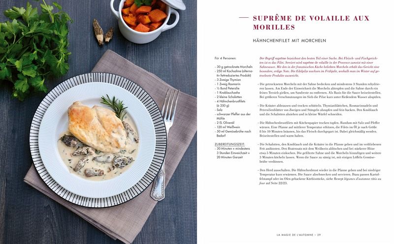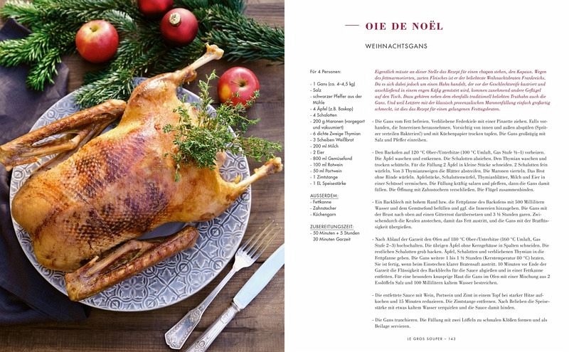 In sieben Kapiteln stellt sie ihre beliebtesten Herbst- und Winterrezepte sowie Weihnachtstraditionen der Region vor, untermalt von stimmungsvollen Bildern und Anekdoten. Mit Beschreibungen von Spezialitäten, Informationen zu regionalen Produkten und 65 einfach nachzukochenden Rezepten bietet das Buch alles für eine gelungene Winterzeit. Vom klassischen Kartoffelgratin und gratinierter Zwiebelsuppe über Hähnchenbrust in Morchel-Sahnesauce und Mangoldkuchen bis zum berühmten Baba au rhum und Bûche de noël (Biskuitrolle mit Schokolade) kommen Fans der mediterranen Küche sowie Provence-Liebhaberinnen und -Liebhaber voll auf ihre Kosten.