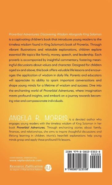 Proverbial Adventures: Discovering Wisdom Alongside King Solomon is a captivating children's book that introduces young readers to the timeless wisdom found in King Solomon's book of Proverbs. Through vibrant illustrations and relatable explanations, children explore essential life topics like family, money, speech, and leadership. Each proverb is accompanied by insightful commentary, fostering meaningful discussions about values and character. Designed for children aged six and above, this book offers valuable life lessons and encourages the application of wisdom in daily life. Parents and educators will appreciate its ability to spark important conversations and shape young minds for a lifetime of wisdom and success. Dive into the enchanting world of Proverbial Adventures, where imagination meets profound insights, and embark on a journey towards becoming wise and compassionate individuals.