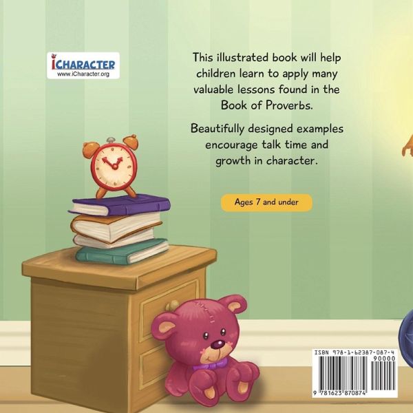 Drawing from the wisdom of Proverbs, this book can help children apply the positive traits and qualities therein. Colorful illustrations and easy explanations encourage kids to grow in their moral character. Includes 15 key Bible verses. Suggested for ages 8 and under. For more kids products and free downloads, visit our website at www.icharacter.org