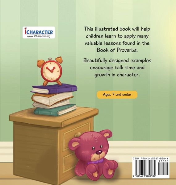 Drawing from the wisdom of Proverbs, this book can help children apply the positive traits and qualities therein. Colorful illustrations and easy explanations encourage kids to grow in their moral character. Includes 15 key Bible verses. Suggested for ages 8 and under. For more kids products and free downloads, visit our website at www.icharacter.org