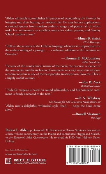 Alden admirably accomplishes his purpose of expounding the Proverbs by bringing out their bearing on modern life. He uses homey applications, occasional quotes from modern authors, songs and poems, all of which make his commentary an excellent source for elders, pastors, and Sunday School teachers to use. --Elmer B Smick, PCA Messenger Reflects the nuances of the Hebrew language wherever it is appropriate for the understanding of a passage. . . . a welcome addition to the literature on Proverbs. --Thomas E. McComiskey, Bible Newsletter Because of the nontechnical nature of the book, the practical relevance of the comments, and the inclusion of comments on every verse, this reviewer recommends this as one of the best popular treatments on Proverbs. This is a highly useful volume. . . --Roy B. Zuck, Bibliotheca Sacra [Alden's] exegesis is based on sound scholarship, and his homiletic comment is firmly anchored to the text. --R. N. Whybray, The Society for Old Testament Study Book List Alden uses a delightful, whimsical style [that]. . . helps the book come alive. --Russell Maatman, Pro Rege