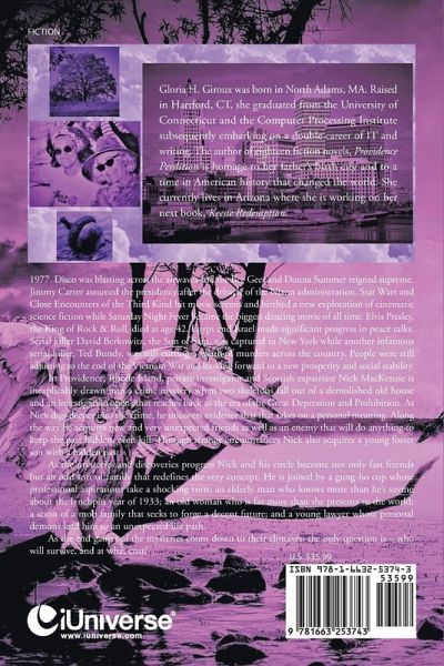 1977. Disco was blasting across the airwaves and the Bee Gees and Donna Summer reigned supreme. Jimmy Carter assumed the presidency after the debacle of the Nixon administration. Star Wars and Close Encounters of the Third Kind hit movie screens and birthed a new exploration of cinematic science fiction while Saturday Night Fever became the biggest dancing movie of all time. Elvis Presley, the King of Rock & Roll, died at age 42. Egypt and Israel made significant progress in peace talks. Serial killer David Berkowitz, the Son of Sam, was captured in New York while another infamous serial killer, Ted Bundy, was still cutting a swath of murders across the country. People were still adjusting to the end of the Vietnam war and looking forward to a new prosperity and social stability. In Providence, Rhode Island, private investigator and Scottish expatriate Nick MacKenzie is inexplicably drawn into a crime mystery when two skeletons fall out of a demolished old house and an investigation opens that reaches back to the era of the Great Depression and Prohibition. As Nick digs deeper into the crime, he uncovers evidence that that takes on a personal meaning. Along the way he acquires new and very unexpected friends as well as an enemy that will do anything to keep the past hidden, even kill. Through strange circumstances Nick also acquires a young foster son with a hidden past. As the mysteries and discoveries progress Nick and his circle become not only fast friends but an odd sort of family that redefines the very concept. He is joined by a gung-ho cop whose professional aspirations take a shocking turn; an elderly man who knows more than he's saying about the lynchpin year of 1933; an old woman who is far more than she presents to the world; a scion of a mob family that seeks to forge a decent future; and a young lawyer whose personal demons lead him to an unexpected life path. As the end games of the mysteries count down to their climaxes, the only question is - who will survive, and at what cost?