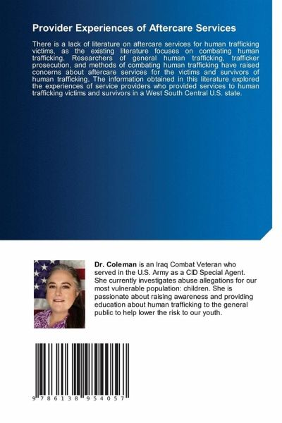 There is a lack of literature on aftercare services for human trafficking victims, as the existing literature focuses on combating human trafficking. Researchers of general human trafficking, trafficker prosecution, and methods of combating human trafficking have raised concerns about aftercare services for the victims and survivors of human trafficking. The information obtained in this literature explored the experiences of service providers who provided services to human trafficking victims and survivors in a West South Central U.S. state.