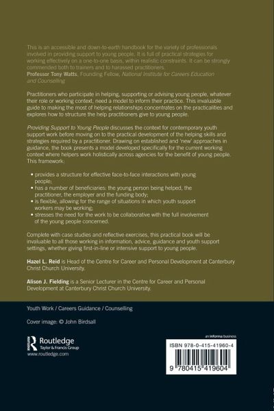 This is an invaluable guide to making the most of helping relationships. It concentrates on the practicalities and explores how to structure the help practitioners give to young people. Including case studies, reflective exercises, and dialogue examples that illustrate the model and use of skills, chapters cover: the context for youth support services and what 'professional helping' and youth support roles involve the practical development of the helping skills and strategies required by a practitioner concepts from various counselling models that have particular relevance for helping young people and discussing 'hard to reach' young people the stages of Egan's skilled helper model in some depth, applying it particularly to youth support work. Describing an accessible 'how-to' approach to engaging with young people, this book will be essential reading to all those working in information, advice, guidance and youth support settings, whether giving first-in-line or intensive support to young people.