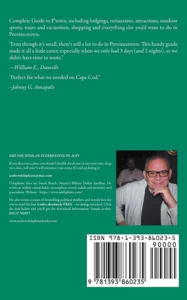 Complete Guide to P'town, including lodgings, restaurants, attractions, outdoor sports, tours and excursions, shopping and everything else you'd want to do in Provincetown. "Even though it's small, there's still a lot to do in Provincetown. This handy guide made it all a little easier, especially when we only had 3 days (and 2 nights), so we didn't have time to waste." ---William E., Dunville "Perfect for what we needed on Cape Cod." –Johnny G, Annapolis