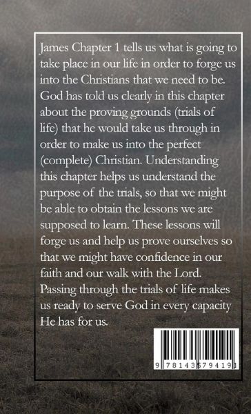 James 1 tells us what is going to take place in our life in order to forge us into the Christians that we need to be. God has told us clearly in this chapter about the proving grounds (trials of life) that he would take us through in order to make us into the perfect (complete) Christian. Understanding this chapter helps us understand the purpose of the trials, so that we might be able to obtain the lessons we are supposed to learn. These lessons will forge us and help us prove ourselves so that we might have confidence in our faith and our walk with the Lord. Passing through the trials of…mehr
