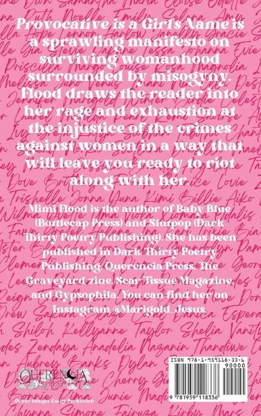 Provocative is a Girl's Name is a sprawling manifesto on surviving womanhood surrounded by misogyny. Flood draws the reader into her rage and exhaustion at the injustice of the crimes against women in a way that will leave you ready to riot along with her.