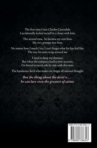 From USA Today bestselling author Ava Harrison comes a new standalone grumpy sunshine office romance. The first time I met Charles Cavendish, I accidentally locked myself in a closet with him. The second time, he became my new boss. My very grumpy new boss. No matter how I much I try, I can't forget what his lips feel like. The way his arms wrap around me. I need to keep my distance. But when the company lands a new account, I'm forced to work side by side with this man. The handsome devil who makes me forget all rational thought. But the thing about the devil is . . . he can lure even the greatest of saints.