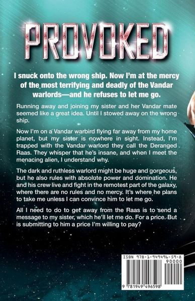 I snuck onto the wrong ship. Now I'm at the mercy of the most terrifying and deadly of the Vandar warlords-and he refuses to let me go. Running away and joining my sister and her Vandar mate seemed like a great idea. Until I stowed away on the wrong ship. Now I'm on a Vandar warbird flying far away from my home planet, but my sister is nowhere in sight. Instead, I'm trapped with the Vandar warlord they call the Deranged Raas. They whisper that he's insane, and when I meet the menacing alien, I understand why. The dark and ruthless warlord might be huge and gorgeous, but he also rules with absolute power and domination. He and his crew live and fight in the remotest part of the galaxy, where there are no rules and no mercy. It's where he plans to take me unless I can convince him to let me go. Raas Vassim does not tolerate stowaways or challenge. But I didn't run away from one controlling life to end up in another. No way will I submit to his commands-even if his touch provokes feelings I've never experienced before. Although I fear his darkness, it also stokes a fire deep within me. And makes me want to delve beneath his dominant and savage exterior. All I need to do to get away from the Raas is to send a message to my sister, which he'll let me do. For a price. But is submitting to him a price I'm willing to pay? ¿