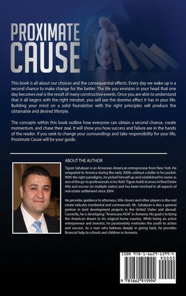 This book is all about our choices and the consequential effects. Every day we wake up is a second chance to make change for the better. The life you envision in your head that one day becomes real is the result of many constructive events. Once you are able to understand that it all begins with the right mindset, you will see the domino effect it has in your life. Building your mind on a solid foundation with the right principles will produce the obtainable and desired lifestyle. The concepts within this book outline how everyone can obtain a second chance, create momentum, and chase their zeal. It will show you how success and failure are in the hands of the reader. If you seek to change your surroundings and take responsibility for your life, Proximate Cause will be your guide.