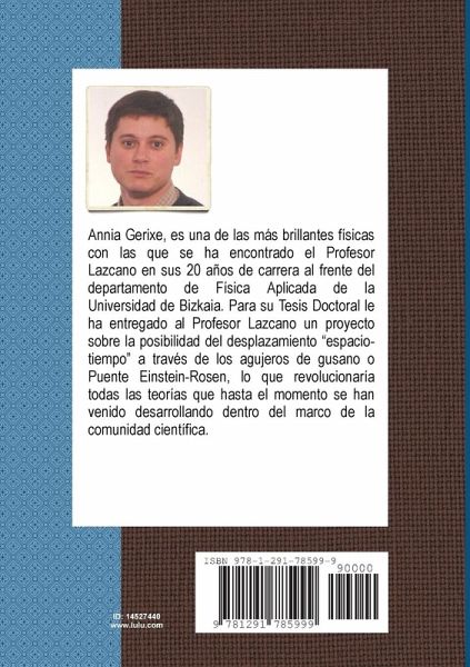 Annia Gerixe, es una de las más brillantes físicas con las que se ha encontrado el Profesor Lazcano en sus 20 años de carrera al frente del departamento de Física Aplicada de la Universidad de Bizkaia. Para su Tesis Doctoral le ha entregado al Profesor Lazcano un proyecto sobre la posibilidad del desplazamiento "espacio-tiempo" a través de los agujeros de gusano o Puente Einstein-Rosen, lo que revolucionaría todas las teorías que hasta el momento se han venido desarrollando dentro del marco de la comunidad científica.