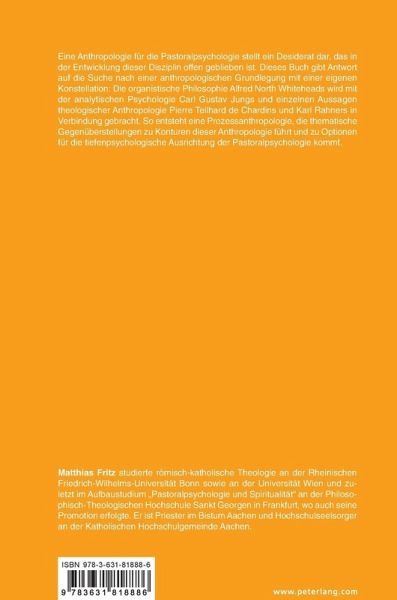 Eine Anthropologie für die Pastoralpsychologie stellt ein Desiderat dar, das in der Entwicklung dieser Disziplin offen geblieben ist. Dieses Buch gibt Antwort auf die Suche nach einer anthropologischen Grundlegung mit einer eigenen Konstellation: Die organistische Philosophie Alfred North Whiteheads wird mit der analytischen Psychologie Carl Gustav Jungs und einzelnen Aussagen theologischer Anthropologie Pierre Teilhard de Chardins und Karl Rahners in Verbindung gebracht. So entsteht eine Prozessanthropologie, die thematische Gegenüberstellungen zu Konturen dieser Anthropologie führt und zu Optionen für die tiefenpsychologische Ausrichtung der Pastoralpsychologie kommt.