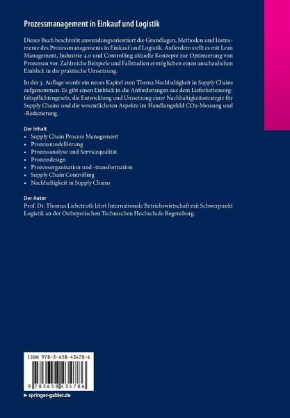 Dieses Buch beschreibt anwendungsorientiert die Grundlagen, Methoden und Instrumente des Prozessmanagements in Einkauf und Logistik. Außerdem stellt es mit Lean Management, Industrie 4.0 und Controlling aktuelle Konzepte zur Optimierung von Prozessen vor. Zahlreiche Beispiele und Fallstudien ermöglichen einen anschaulichen Einblick in die praktische Umsetzung. In der 3. Auflage wurde ein neues Kapitel zum Thema Nachhaltigkeit in Supply Chains aufgenommen. Es gibt einen Einblick in die Anforderungen aus dem Lieferkettensorgfaltspflichtengesetz, die Entwicklung und Umsetzung einer Nachhaltigkeitsstrategie für Supply Chains und die wesentlichsten Aspekte im Handlungsfeld CO2-Messung und -Reduzierung.