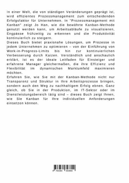 In einer Welt, die von ständigen Veränderungen geprägt ist, wird effizientes Prozessmanagement zum entscheidenden Erfolgsfaktor für Unternehmen. In "Prozessmanagement mit Kanban" zeigt Jo Han, wie die bewährte Kanban-Methode genutzt werden kann, um Arbeitsabläufe zu visualisieren, Engpässe frühzeitig zu erkennen und die Produktivität kontinuierlich zu steigern.Dieses Buch bietet praxisnahe Lösungen, um Prozesse in jedem Unternehmen zu optimieren - von der Einführung von Work-in-Progress-Limits bis hin zur kontinuierlichen Verbesserung durch Kaizen. Verständlich und anschaulich erklärt, ist es der ideale Leitfaden für Einsteiger und erfahrene Manager gleichermaßen, die ihre Effizienz und Flexibilität im dynamischen Marktumfeld maximieren möchten.Erfahren Sie, wie Sie mit der Kanban-Methode nicht nur Transparenz und Struktur in Ihre Arbeitsprozesse bringen, sondern auch den Weg zu nachhaltigem Erfolg ebnen. Ganz gleich, ob Sie in der Produktion, im IT-Sektor oder im Dienstleistungsbereich tätig sind - dieses Buch zeigt Ihnen, wie Sie Kanban für Ihre individuellen Anforderungen einsetzen können.