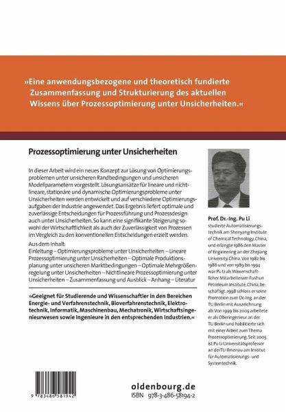 In diesem Werk wird ein neues Konzept zur Lösung von Optimierungsproblemen mit unsicheren Randbedingungen und unsicheren Modellparametern vorgestellt. Lösungsansätze für lineare und nichtlineare, stationäre und dynamische Optimierungsprobleme mit Unsicherheiten werden entwickelt und auf verschiedene Optimierungsaufgaben der Industrie angewendet.